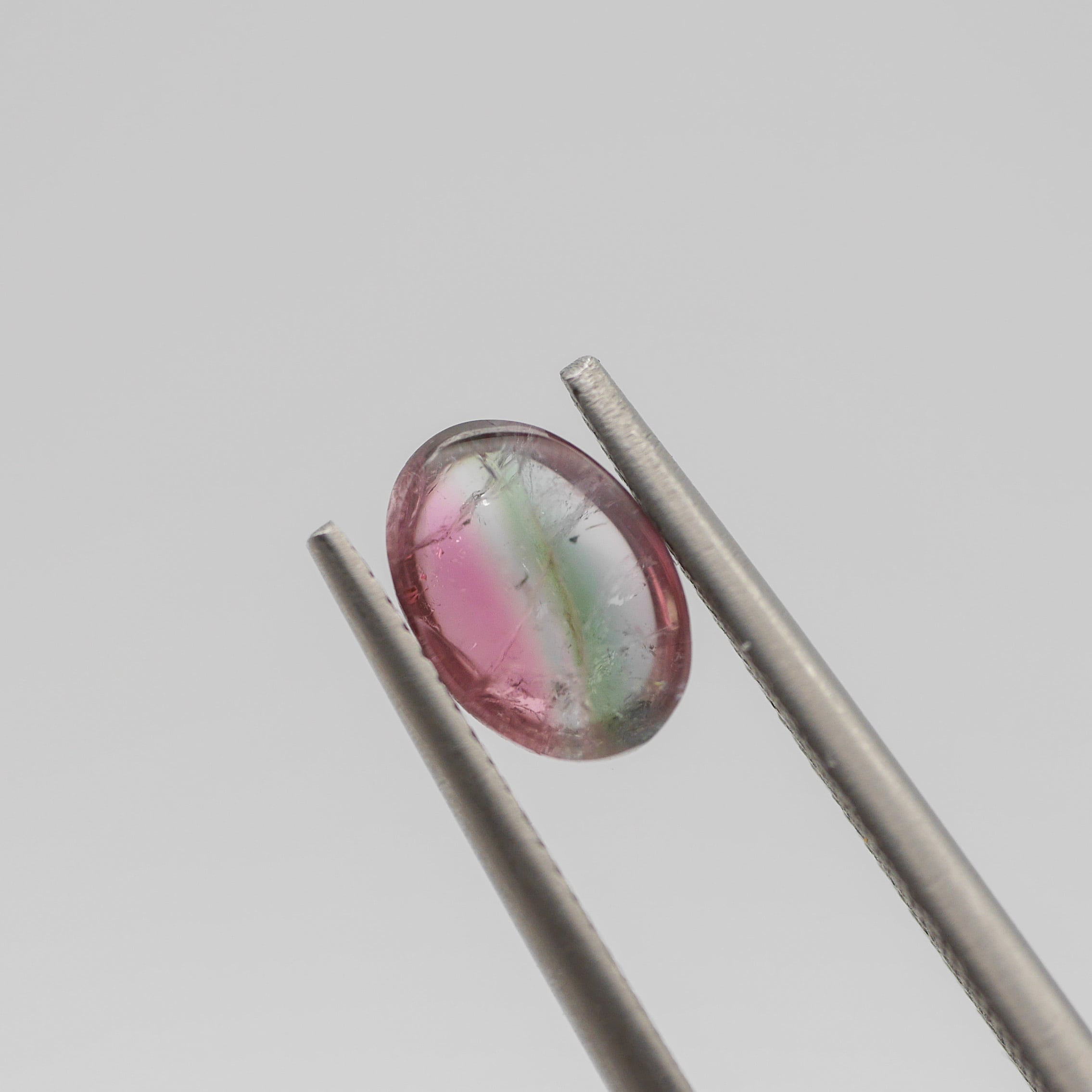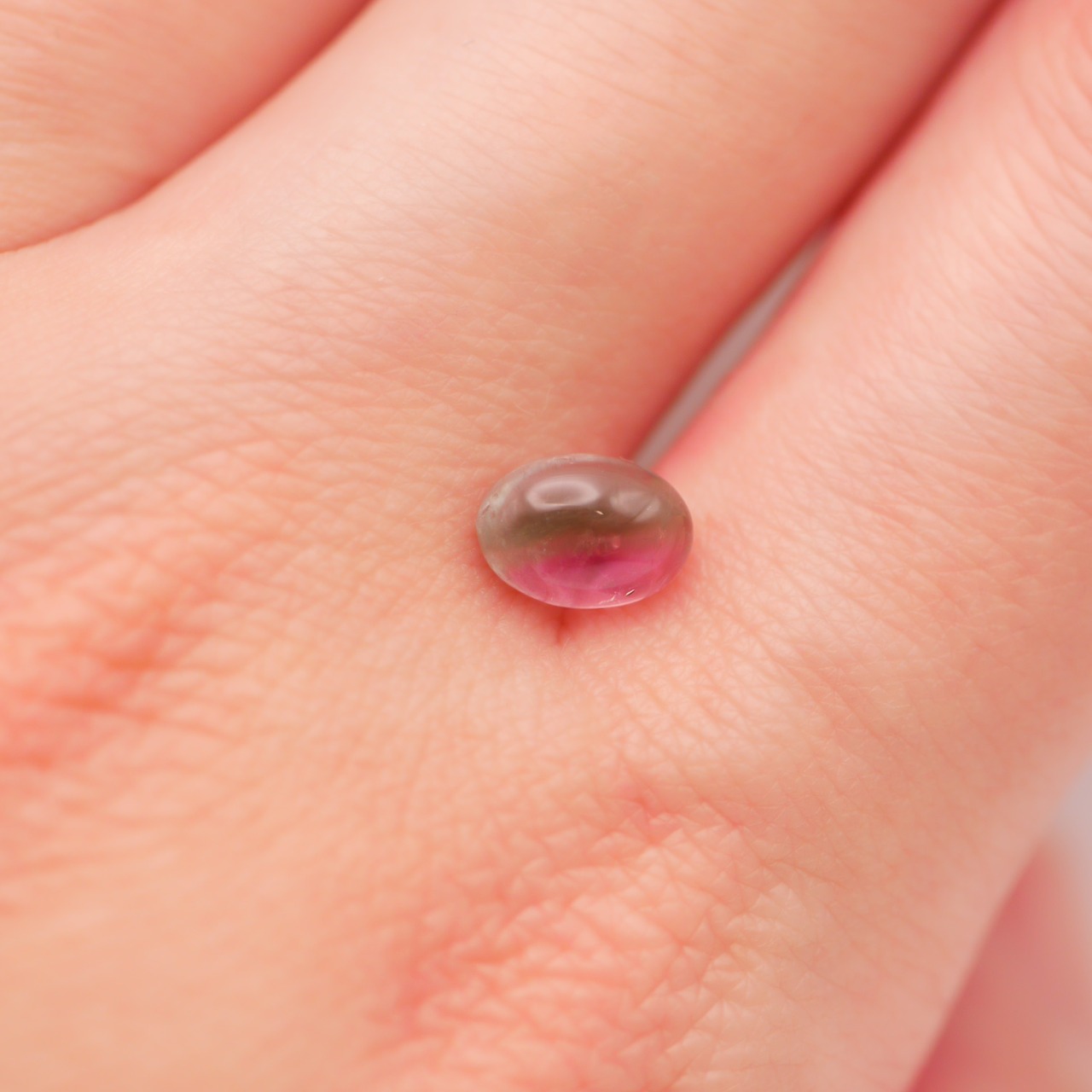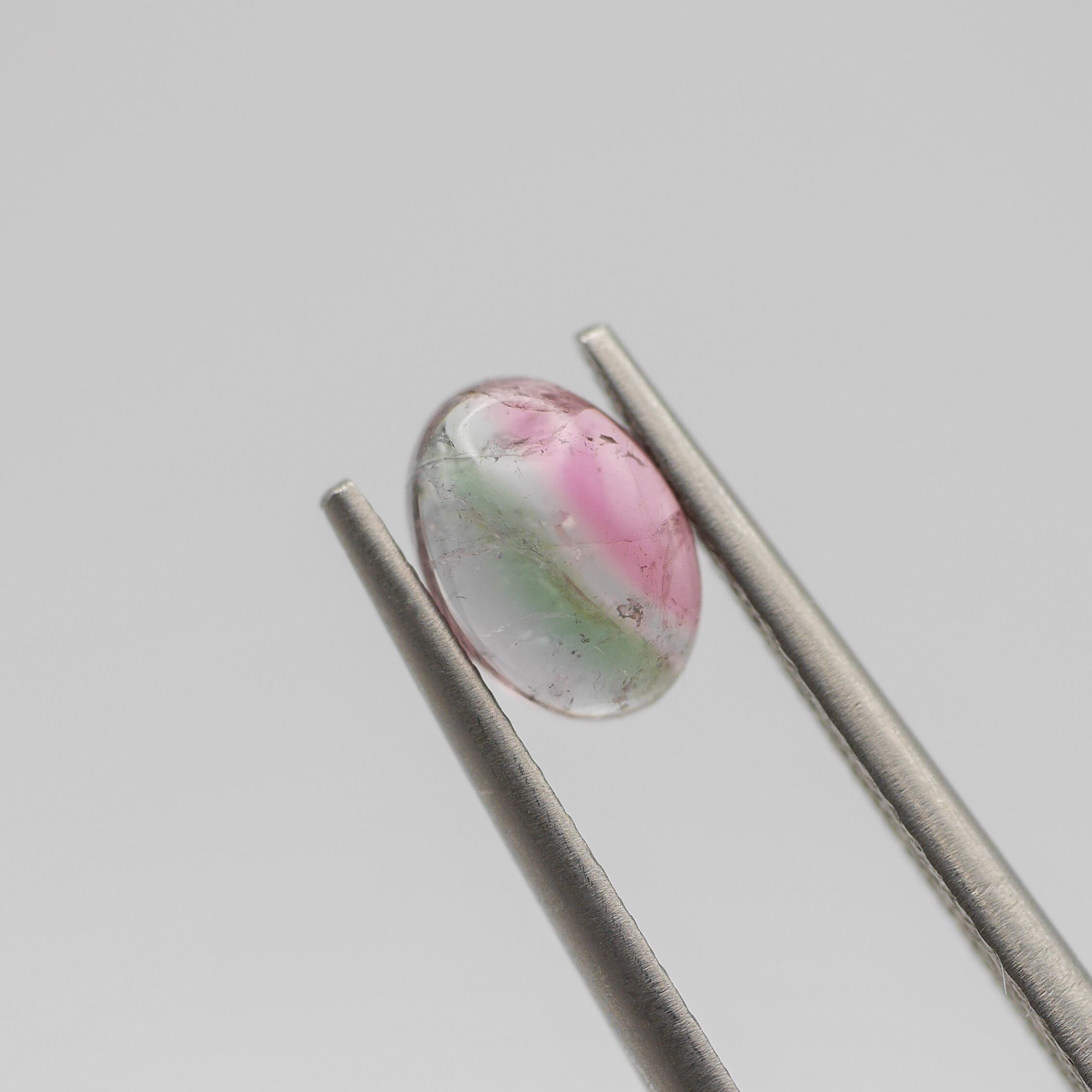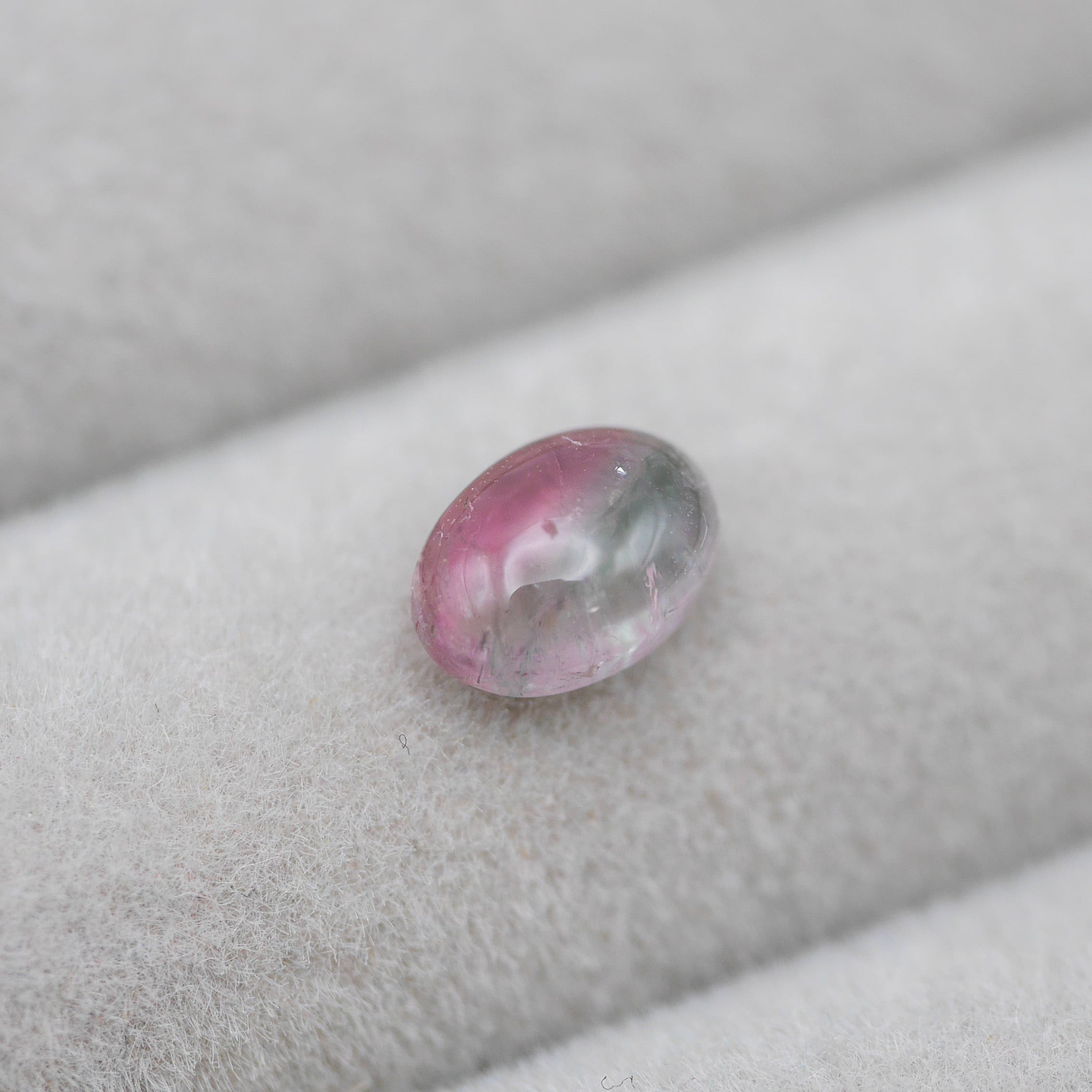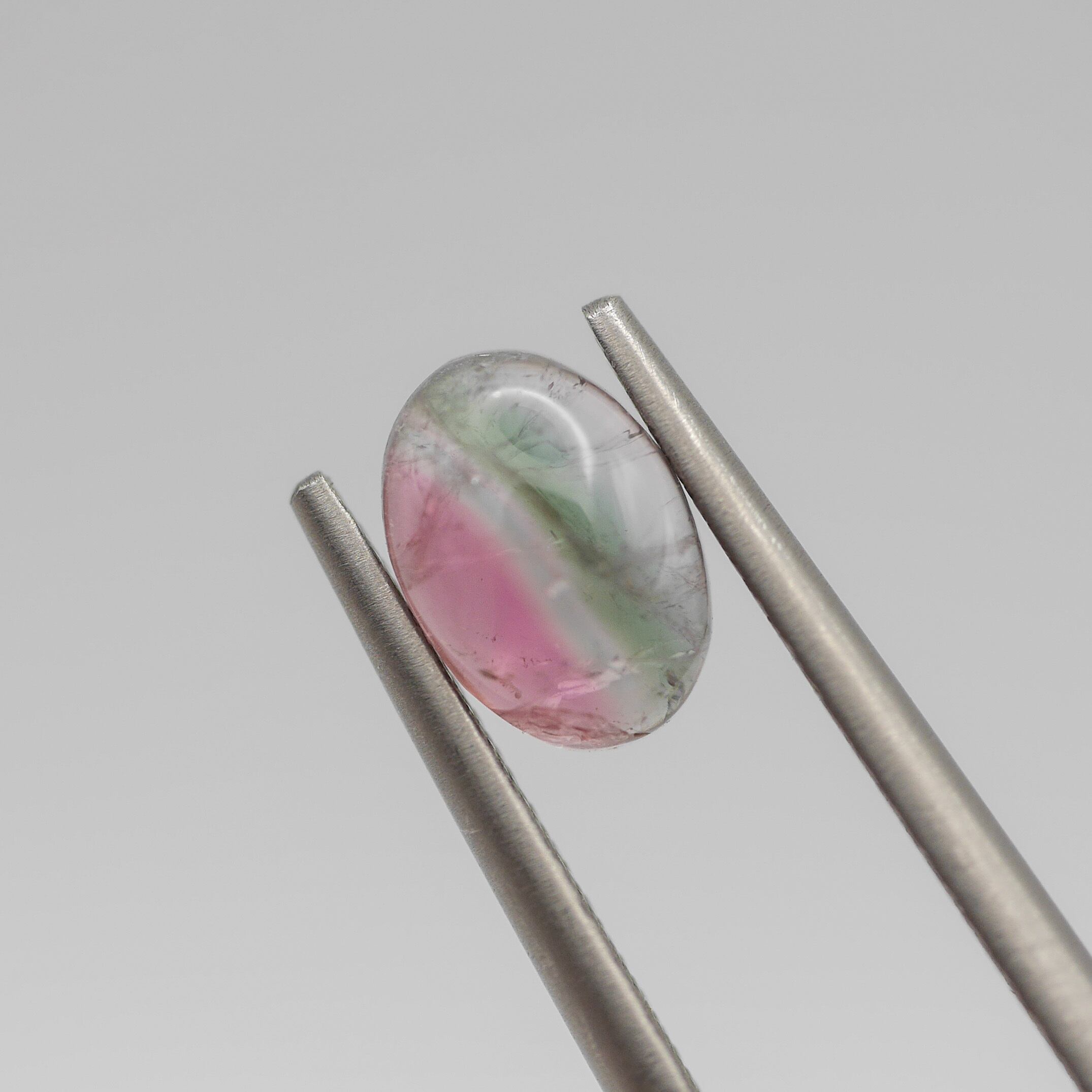 ピンクとグリーンが綺麗に半分入っているカボションのバイカラートルマリン♪